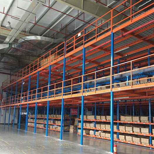 "閣樓式貨架采用多層擱板式貨架結構,提高了空間的存儲利用率,同時保持了擱板式貨架的特點"