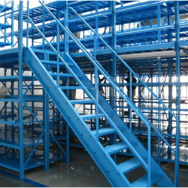 閣樓式貨架的做法可以是鋼平臺上每層裝貨架,也可以是貨架本身是承重結構,一般可設計成多層樓層(通常2-3層),配有人行樓梯、扶手和貨物上貨門等。